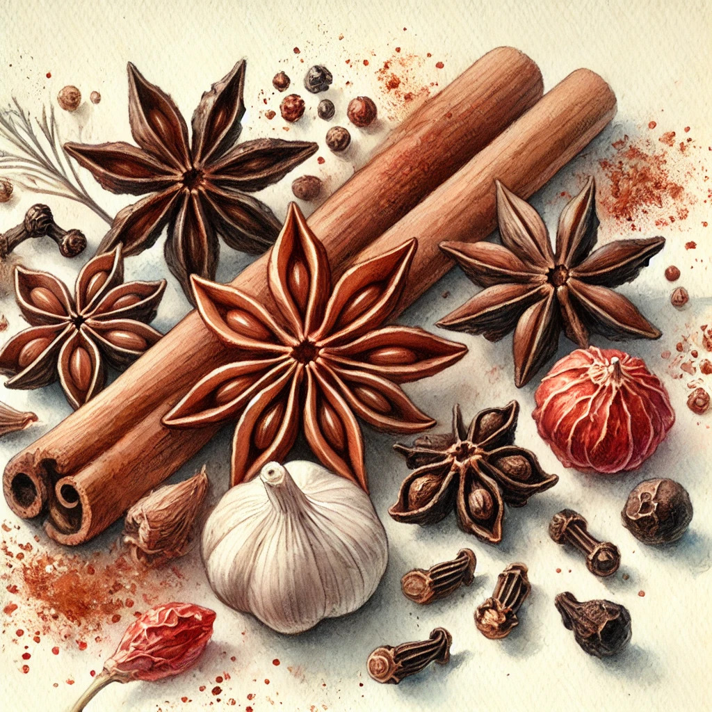 Chinese Tradition: Five-spice powder is a blend of five key spices (usually star anise, cloves, Chinese cinnamon, Sichuan pepper, and fennel) representing the five elements in Chinese philosophy.